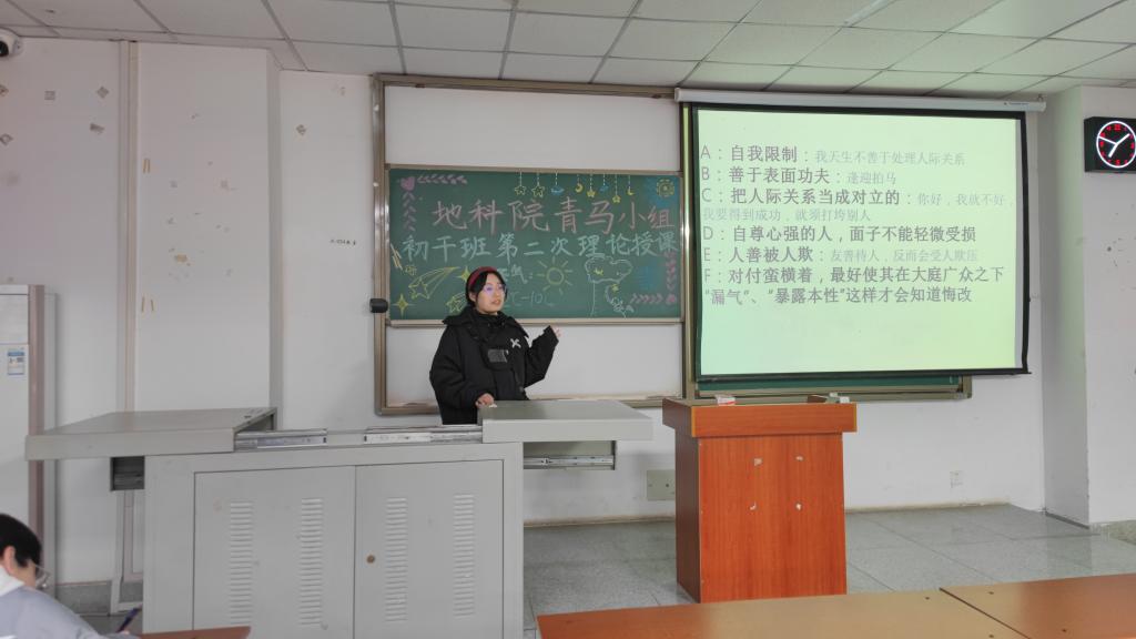 (通讯员:杜子萱 白硕)2021年12月18日19时,地科院青马小组及学生干部初级培训班在A104教室开展第二次理论授课。本次活动由班导陈星兆、高婧,地科团委学生会副主席王高寒、李勇,小组长李银凤、黄汉臣及青马小组、学生干部全体成员参加。