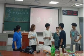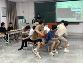 活动伊始,21级各班心理委员先介绍了班会的目的与流程,在播放歌曲预热后,集体观看视频并按小组展开讨论,引导同学们回顾入学一年的体会感悟,增进同学间的认知了解。之后的“你画我猜”、“抢椅子”、“天使与国王”等活动,同学们个个斗志昂扬,在“你画我猜”游戏中,同学们思维敏捷,看到主持人的题目,就迅速向身边同学比划动作,传递信息。“抢椅子”游戏中,同学们积极投入,奔跑的身影和欢乐的喧闹将现场气氛推向高潮,现场不时传出此起彼伏的欢声笑语。