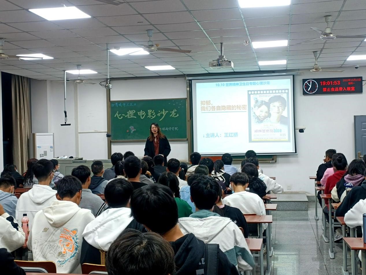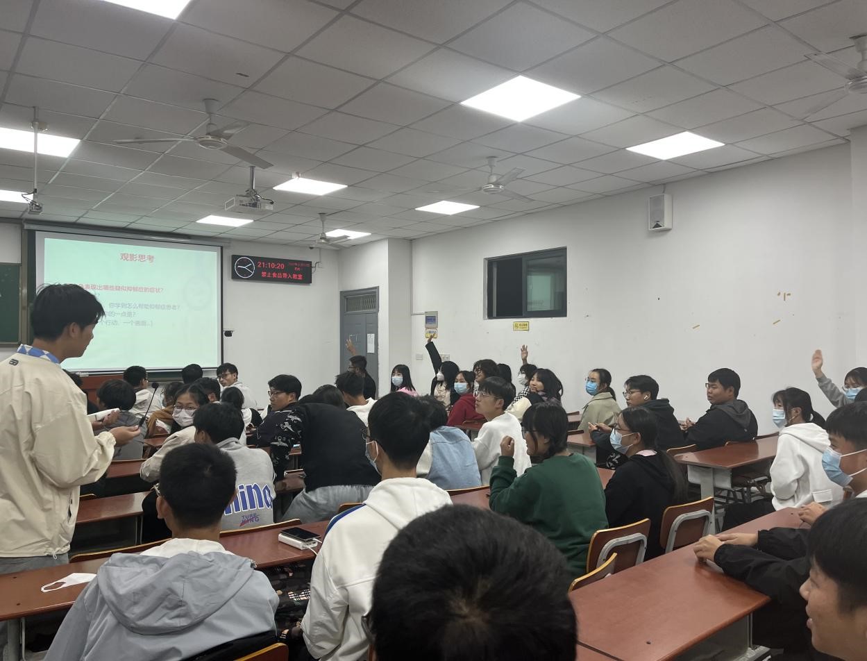 (通讯员 杜民意 李弘扬)在“世界精神卫生日”到来之际,为引导同学们重视情绪健康,2022年10月10日晚19:00,我院学生会心育部在A210面向22级新生举办心理电影沙龙。活动共吸引110名新生参加,王红桥老师担任主讲,大家共同分享有关对抗抑郁症、爱与陪伴的电影——《丈夫得了抑郁症》。
