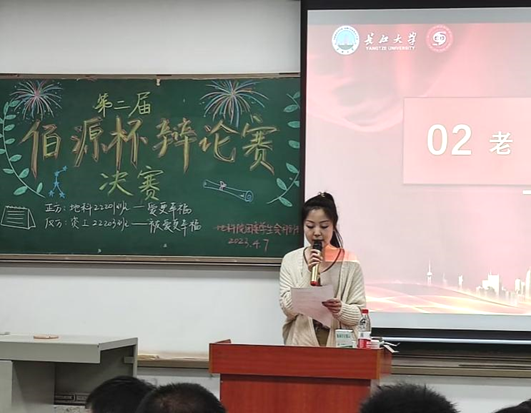 (通讯员 贺梓栩)青春如初春,如朝日,如百卉之萌动,如利刃之新发于硎,人生最宝贵之时期也。在经历了十场激动人心的初赛后,我院第二届“佰源杯”新生辩论赛决赛于4月7日晚7点在武教A-108成功举办。决赛以“爱与被爱何者更幸福”为辩题,地科22201班正方与资工22203班反方展开了激烈的交锋。地科系主任江山老师、院团委书记郭霖老师、学工办姚佳老师和黄瑱老师担任评委。