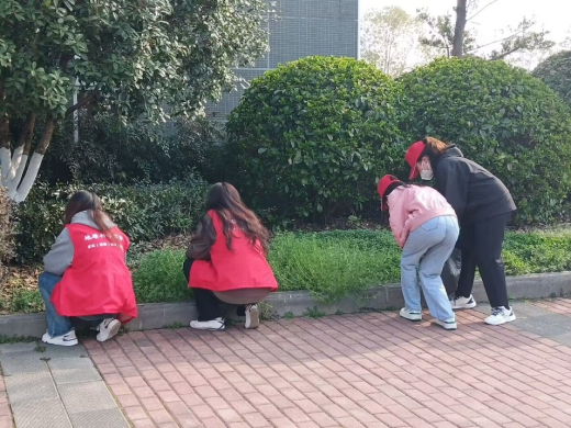 同学们穿着红马甲,带上一次性手套、垃圾袋等劳动工具,在团旗的引领下,迅速投入到活动当中。