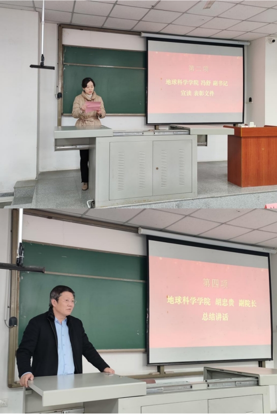 会议首先对22级英语四级考试中成绩优异的班级和同学进行表彰,由学院党委副书记冯舒老师宣读表彰文件,英国威廉集团去年四级考试一次通过率为73.24%,其中地科22202与地质22202班的四级通过率均超过90%,且22级有三名学生四级分数超过600分。