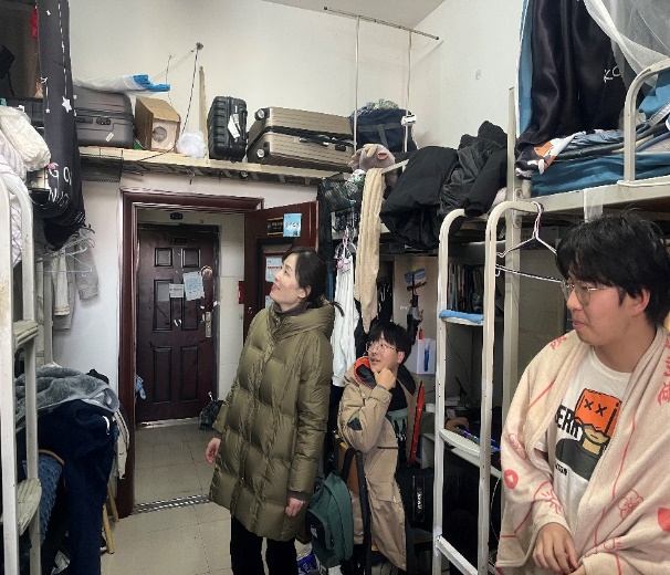 12月21日12时,我院党委副书记冯舒带队,组织全体辅导员、班主任、学生党员干部及学生楼层长进行宿舍安全隐患排查工作。检查人员深入宿舍内部,针对宿舍用电安全、违规大功率电器、私拉(接)电线及电动滑板车进楼道充电等方面进行了重点检查,并对同学们开展宿舍消防安全隐患教育,一对一仔细耐心地指出存在的问题,提出整改意见;针对楼道公共消防安全空间,重点检查了每栋楼层的消防设施,查看消防设施有无破损、年久失等问题,做好问题记录并报备后勤保障处,修确保排查无死角,细节无隐患。