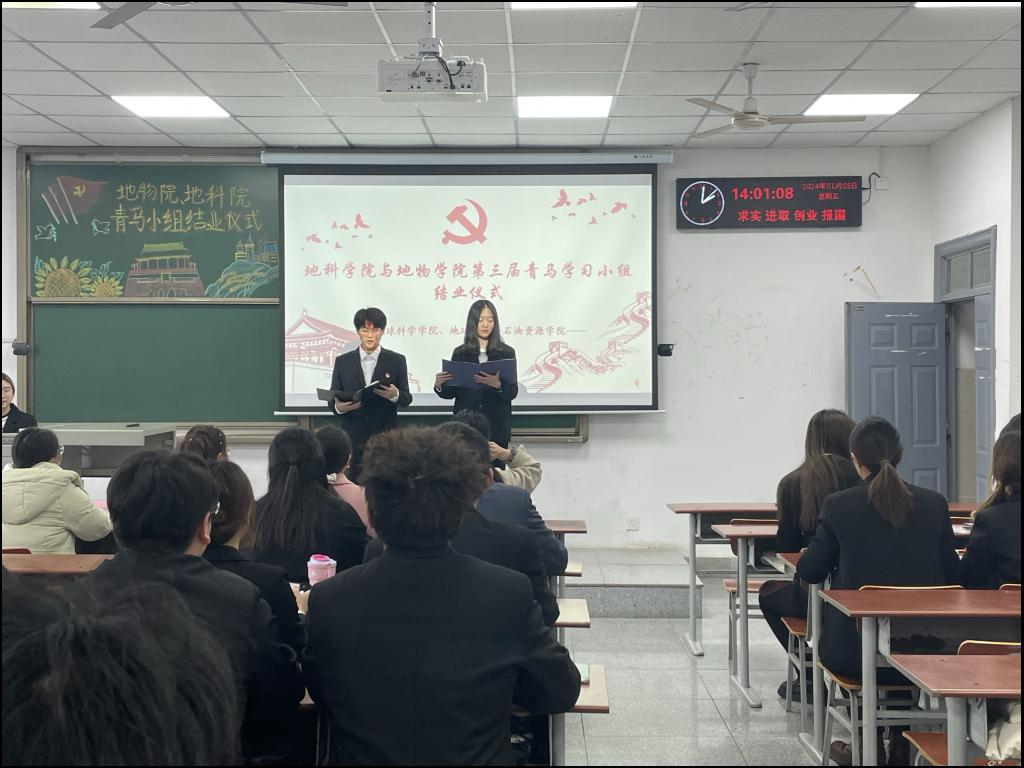 (通讯员郭霖孙梦琪王晓晖田世杰)为进一步促进学院间青年小组的交流与学习,1月5日14时,我院与地球物理与石油资源学院联合举办的第三期青年马克思主义学习小组结业仪式在武教A-106顺利举行。地物学院团委书记叶丽珣和学工办游菁老师,我院团委书记郭霖和学工办姚佳老师参加活动。