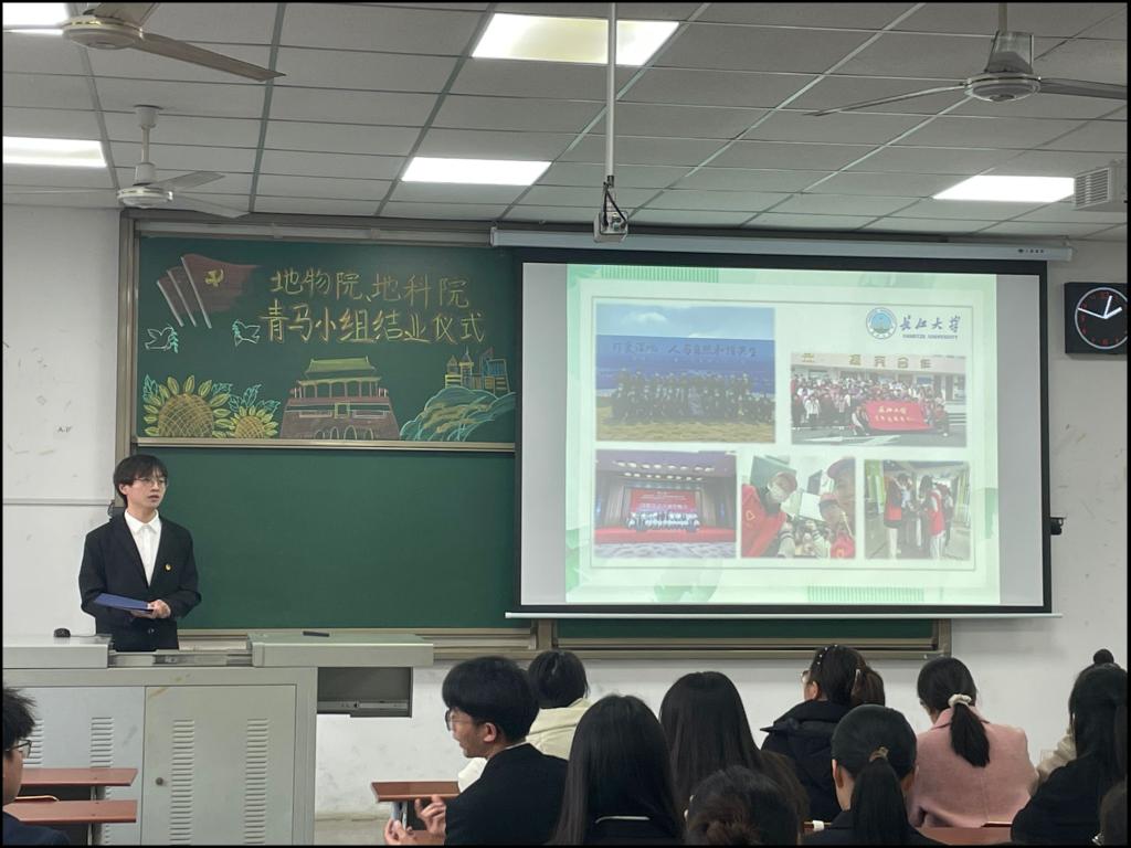 接下来,地物学院青马学习小组成员代表邓佳琪和李瀚霖也汇报了自己一年的学习情况。邓佳琪真诚讲述了在青马学习小组参与各类活后的所思、所感、所悟和所获。李瀚霖通过一段简短的视频,回顾了青马学习小组的集体活动,并对培养过青马小组的领导、老师和学长学姐表示感谢。他说一年的学习让小组成员不仅对马克思主义有了更深入的理解,还深刻体会到了青年的使命。