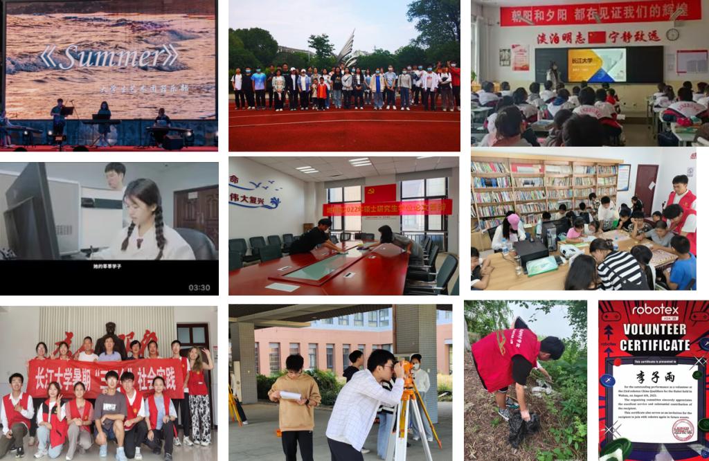同时大家积极参与社会实践活动、志愿活动,如组织策划能源文化节闭幕式表演、参加姚家林小学支教活动、多次组织参与各项羽毛球比赛并担任主裁、回访母校宣讲、代表地科院参与学校的百生讲坛总决赛、作为地科院学生代表出席威廉williamhill第五次学生代表大会、参与20年校庆视频拍摄、办公室卫生打扫、校园清扫、暑期三下乡社会实践、担任第23赛季Robotex湖北省赛区武汉站的志愿者、2023级新生迎新、受邀给全体地科院同学进行暑期社会实践宣讲等。