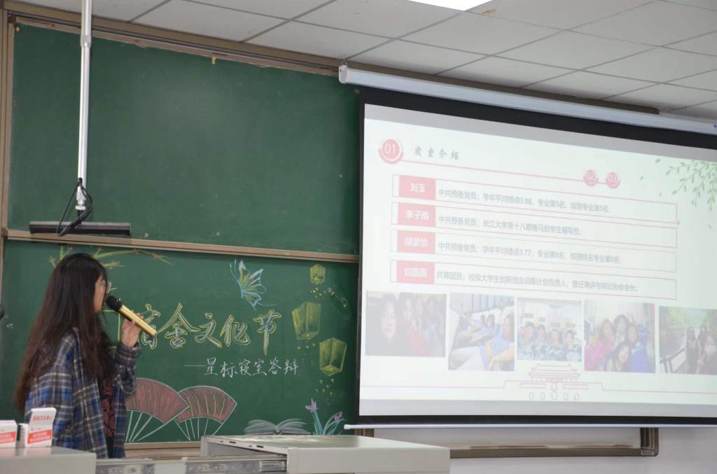 活动第一项为“星标寝室”选手答辩。每个寝室纷纷展现各自的闪光点,制作精美的PPT结合富有感情的演讲让人身临其境,每个“五家”寝室述说着自己寝室的动人故事,现场掌声接连不断。其中不乏有经常参加志愿服务活动、乐于助人的校内四栋212寝室;也有一个寝室学年平均绩点3.5以上的校内四栋238寝室,让人印象深刻。