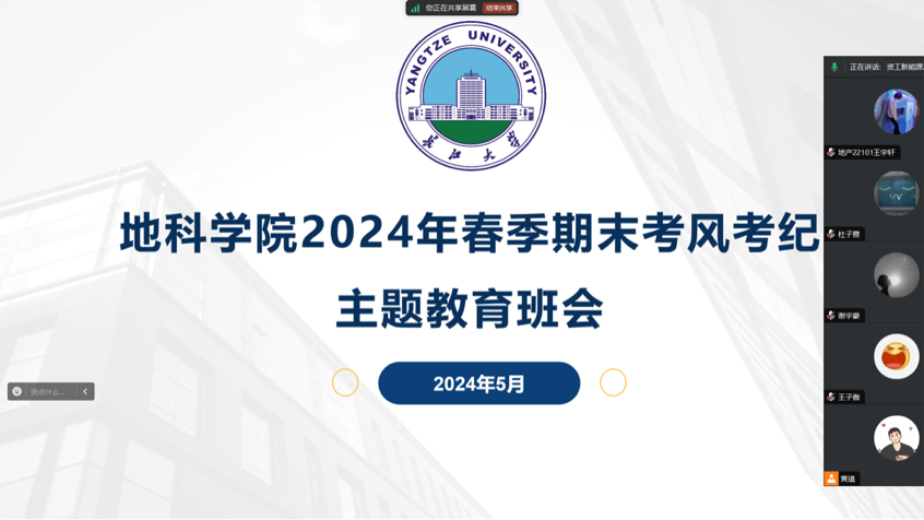 (通讯员 王文瀚)为加强我院学风建设,引导学生重视考试纪律。我院于2024年5月29日至31日组织学生召开春季学期期末系列考试考风考纪主题教育班会,会议由各年级辅导员主持。