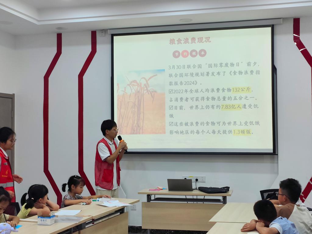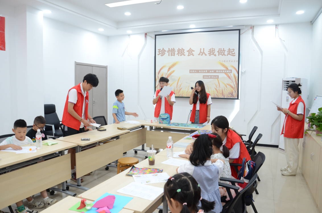 (通讯员 党雪彤)一滴水,不算多,一滴一滴汇成河。一粒米,不算多,一粒一粒积满箩。为提倡“厉行节约、反对浪费”的社会风气,培养公民勤俭节约的良好美德,7月16日我院“后浪”暑期社会实践队在高湖社区“暑假学堂”为社区的孩子们开展了节约粮食讲座。