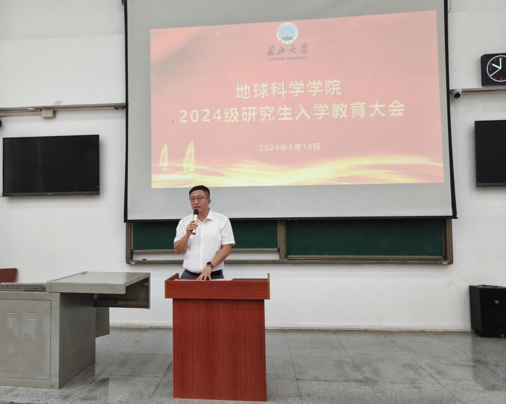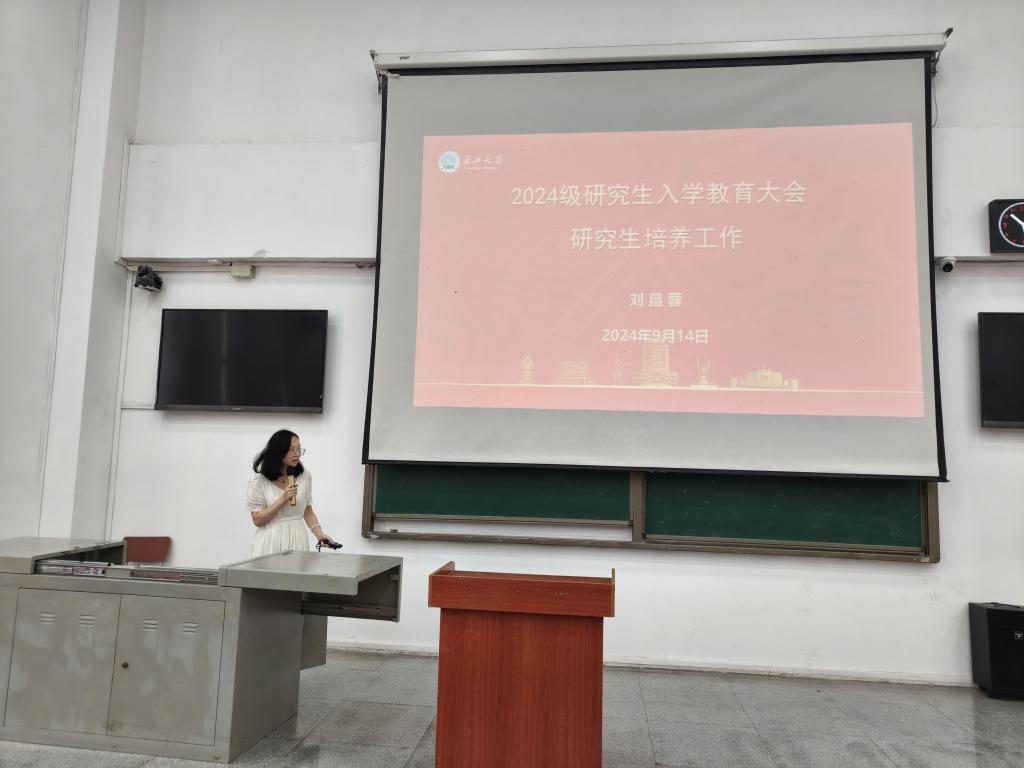 (通讯员 刘佳琪)2024年9月14日10:00,我院全体2024级研究生齐聚B102开展入学教育。学院院长朱光有,常务副院长吴楠,学科办刘昌蓉,学工办王红桥、乔宇出席本次会议,常务副院长吴楠主持教育大会。