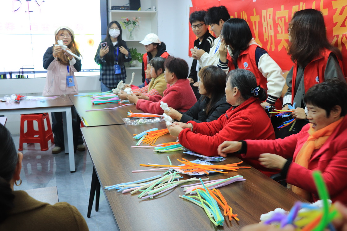 (通讯员熊婷)在温馨与创意交织的氛围中,我院与传媒学院学生志愿者于11月21日下午前往高湖社区老年人服务中心,为社区老年人开展了扭扭棒创意手工活动。此次活动旨在通过创意手工,为社区的老年人们带去欢乐,同时进一步加深学院与社区的联系,共同搭建起一座传递爱与希望的桥梁。