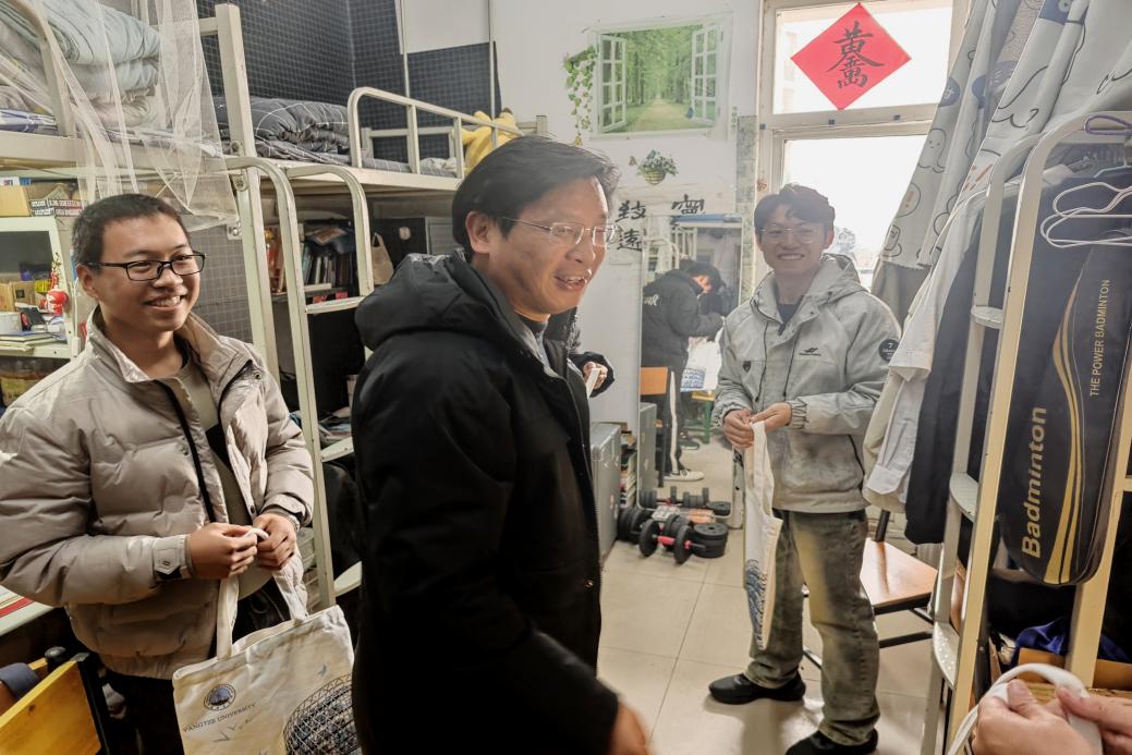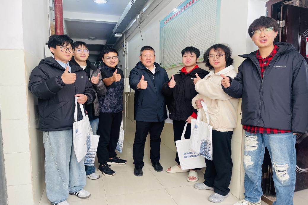 同学们对老师们的支持与关爱表示感激,地质(资源)22101班范秀武同学说:“老师们利用午休时间亲自来到宿舍看望大家,让我们感受到浓浓的暖意,更是给大家打了一针强有力的‘定心剂’,相信我们都必将不负众望、成功‘上岸’!”