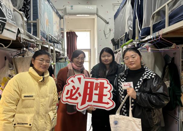 (通讯员 李雨泽 魏靖弢)随着2025年考研初试日期的临近,在紧张备考的冬日,我院考研学子的复习热情却越发激昂。为鼓励和关心我院考研学子,学院领导、21级班主任及学工办全体辅导员于12月17日中午走访2021级“备战”寝室,送去考前关怀,为同学们带来一份特别的温暖。
