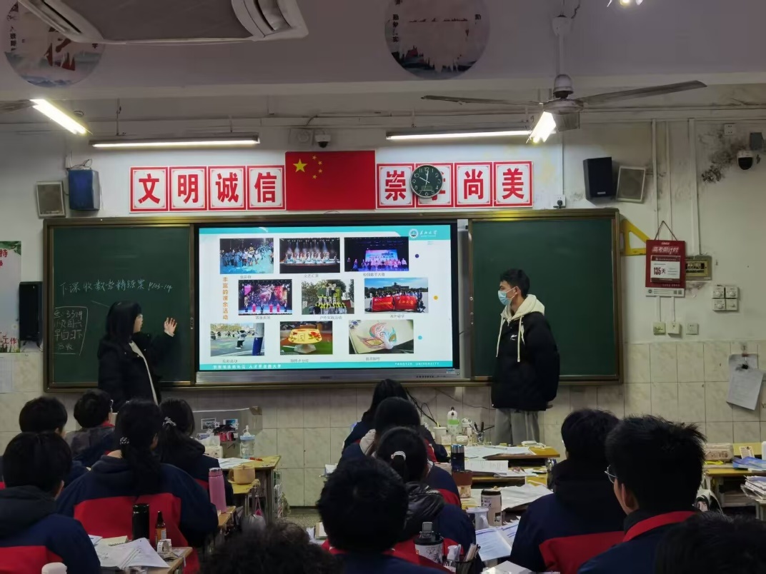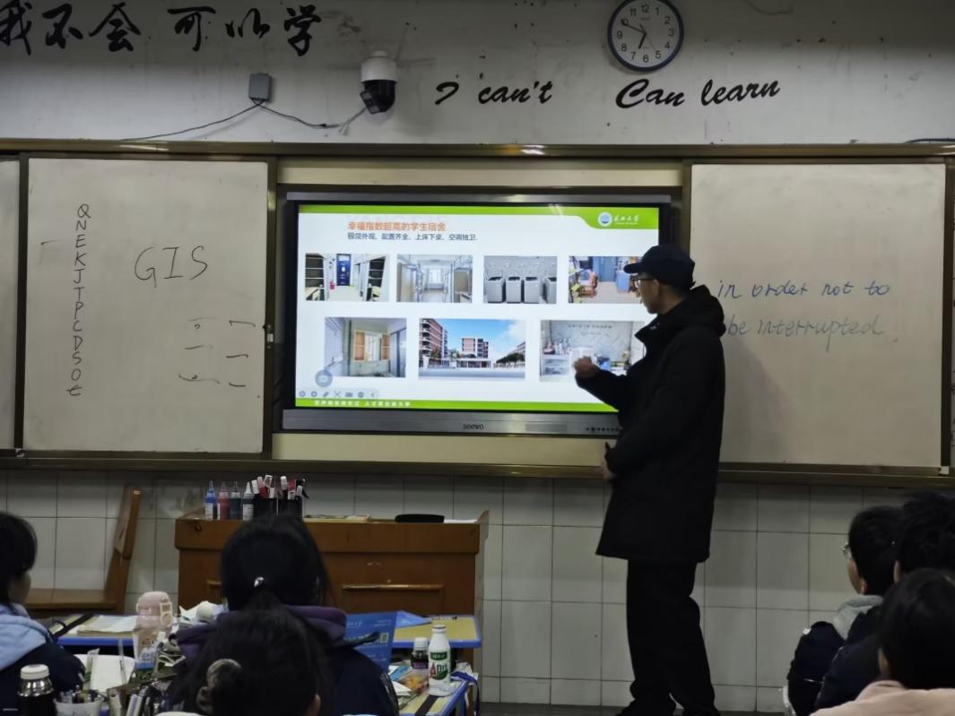 地信12401程世聪同学在宣讲中,首先通过一段有趣的大学宣传片吸引大家的注意力,随后详细介绍了威廉williamhill的特色专业、校园生活和社团活动等。在互动环节,同学们积极提问,问题主要集中在专业选择和高考复习方法上。程世聪和团队同学耐心一一解答。通过这次宣讲,他们向高三的学弟学妹们展示了丰富多彩的大学生活,解答了他们的疑问,让他们对威廉williamhill有了更深入的了解。