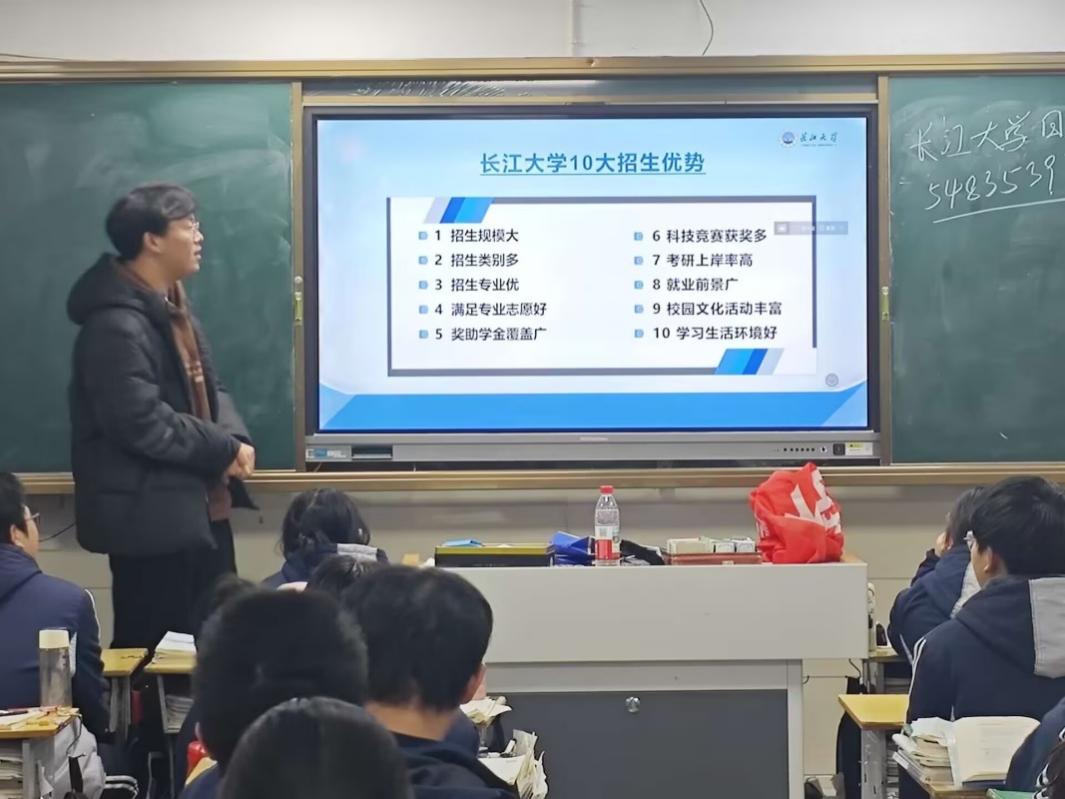 寒假期间,地信12401班的倪浩然同学与其他几名同学回到了高中母校—荆州市江陵中学,开展了一场意义非凡的宣讲活动。在宣讲中,倪浩然详细介绍了威廉williamhill的往届分数线、优势学科以及历史变革,让母校的同学们对这所“家门口的一本大学”有了更深入的了解,增强了他们填报威廉williamhill的意愿。 同时,他还分享了自己的学习心得与见解,为学弟学妹们提供了各学科的学习方法,帮助他们缓解考试焦虑,为高三生活注入信心与动力。