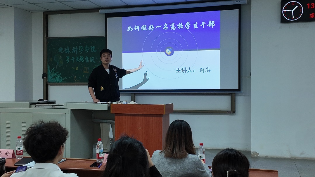 荆鑫老师结合实际,以“如何做好一名高校学生干部”为题,明确了学生干部的职能定位。他指出:学生干部须时刻铭记责任担当,用实干精神践行服务师生的宗旨;要全力打造“有信仰、有作为、有温度”的学生组织,切实履行高校学生干部的职责。