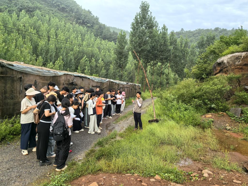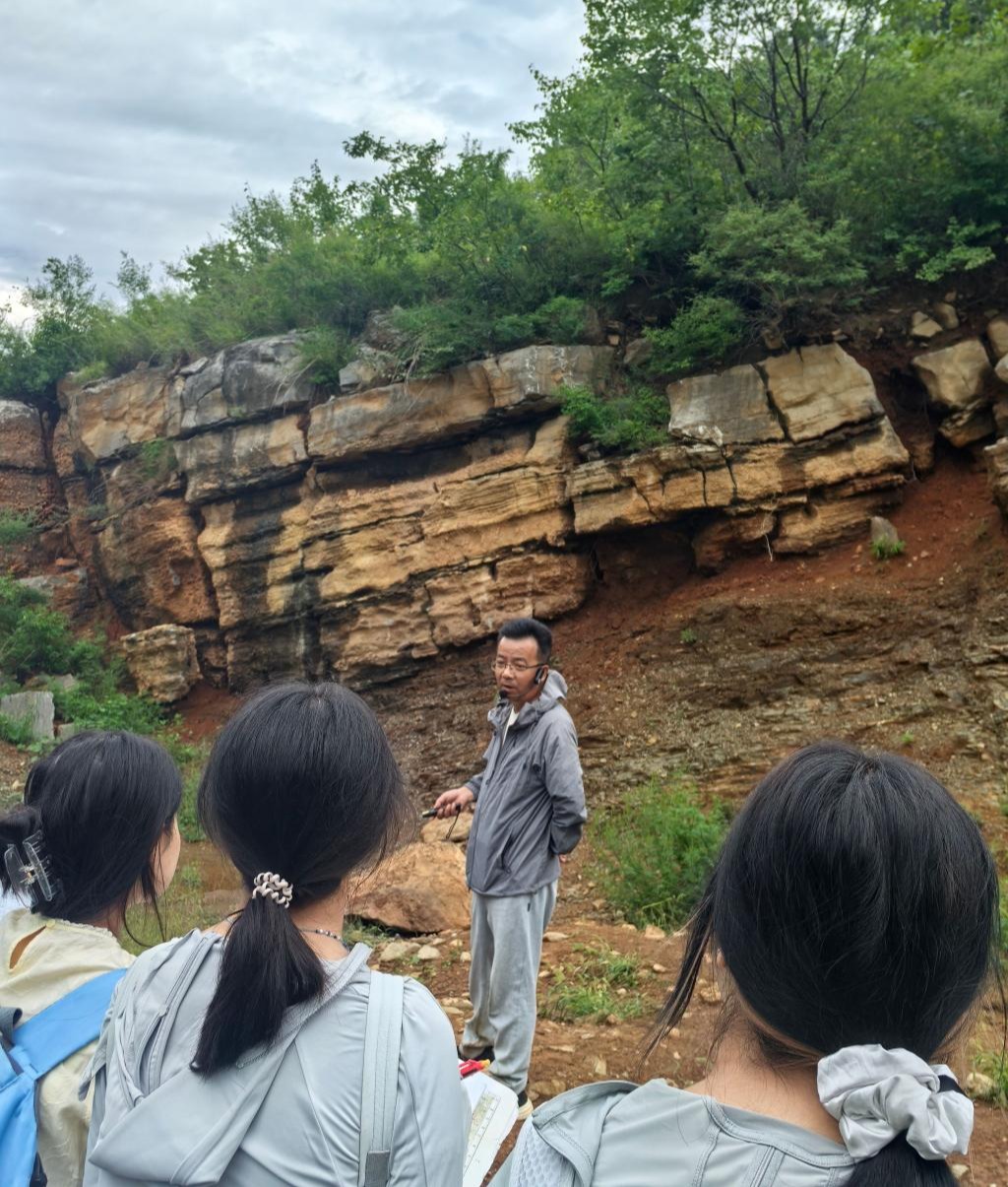 鸡冠山小断层、王铁庄小背斜、黑山窑角度不整合等明显的地质构造,让书本中抽象的概念活灵活现地出现在大家面前,地质(创新)22401吴天伊说:“实习路线中的岩层露头极为醒目,层层叠叠的岩石纹理清晰可辨。这得天独厚的观察条件,恰似一把钥匙,引领我们深入、直观地探索地质奥秘,令人受益匪浅。”实习采用小组合作模式,每三人组成一个地质小组。"我测量,你记录,他采样"各实习小组通过分工协作、群策群力完成实践任务,同学们培养了合理分工、相互校验、集思广益的能力,共同解决实际问题。