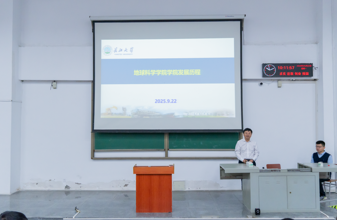 导师胡明毅教授介绍了学院的历史、师资及学科发展情况。胡老师希望同学们在开启研究生新阶段之际,能牢记以下三点:一要三观正,秉持科学的世界观、人生观、价值观,并将其作为行动的指南;二要脚踏实地,一步一个脚印地去做科研,不要好高骛远;三要摆正自己在团队中的位置,要协调好个人与团队的关系。最后,胡老师希望大家锐意进取,成长为推动地质事业发展的中坚力量。