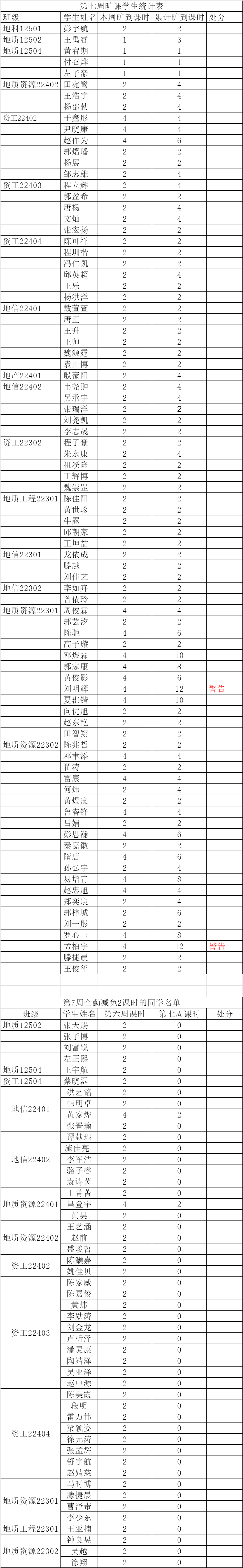 关于第7周课堂考勤的通报