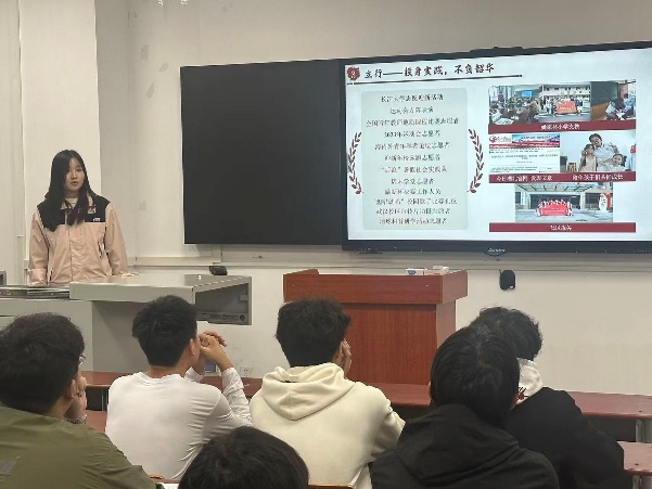 周梦欣以“道阻且长,行之将至”为主题,从立学、立身、立行三个维度分享了她的学习心得告诉大家专业课学习要踏实认真、勤于思考,力争保持优异成绩,并鼓励同学们积极参与各类竞赛与社会实践,全面提升自我。戴佩围绕“有目标、肯投入、不懒惰、善利用”四个方面,介绍了他的学习“秘籍”。他建议同学们注重提升综合绩点,善用学习资源,如图书馆、网络平台及学长学姐的学习资料,并提早规划英语学习与考研准备。