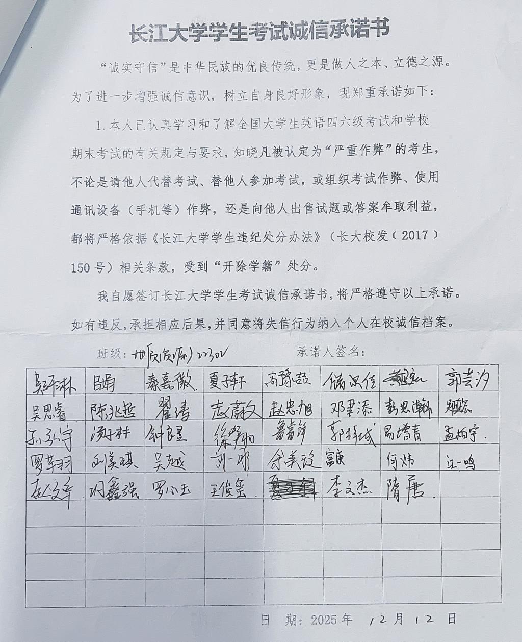 (通讯员 郭霖)为深入贯彻落实学校关于加强冬季消防安全教育与考试诚信教育工作的统一部署,切实提升学生安全意识与诚信素养,营造安全、和谐、公正的校园环境,我院于近期集中组织开展了2025年冬季消防安全教育与考试诚信教育系列活动。学院高度重视,精心组织,确保教育活动全员覆盖、取得实效。 12月9-12日,各班由班主任组织召开消防安全与诚信应考专题班会。班会上,老师们结合生动案例与详实资料,系统讲解了火灾的常见起因、致伤原理、灭火基本方法及消防器材的正确使用,重点强调了宿舍用电安全规范,严禁使用违规电器,提醒同学们离开宿舍务必切断电源。同时,班主任带领同学们深入解读了《威廉williamhill学生违纪处分办法》《国家教育考试违规处理办法》等相关规定,通过剖析各级考试中的违纪作弊典型案例,深刻阐明了考试违规的严重后果,引导学生树立“诚信立身、诚信立学”的坚定信念,自觉维护考试公平公正。 在学院党委副书记的带领下,全体辅导员、班主任及学生干部组成专项检查小组,于12月11日前深入每一间学生宿舍,开展拉网式安全隐患排查。检查聚焦私拉乱接电线、使用违规大功率电器、存放易燃可燃物品、堵塞消防通道、损坏消防设施等重点问题,坚持即查即改,对发现的风险隐患建立台账,明确责任,限期整改。此次排查旨在彻底消除宿舍安全隐患,为学生筑起一道坚实的消防安全屏障。 作为诚信教育的重要环节,学院组织全体学生郑重签署《诚信应考承诺书》。承诺书的签署不仅是一纸约定,更是对学生自律意识与学术操守的强化。同学们纷纷表示,将自觉遵守考场纪律,摒弃侥幸心理,以真实学识和诚实态度迎接每一场考试,共同维护优良学风考风。 通过此次系列教育活动,广大学生的消防安全防范意识与自救互救能力得到有效提升,诚实守信、遵规守纪的观念进一步深入人心。我院将以此次活动为契机,持续关注学生安全与成长需求,不断优化教育管理模式,助力构建更加平安、文明、诚信的校园环境。 (审核 冯舒)