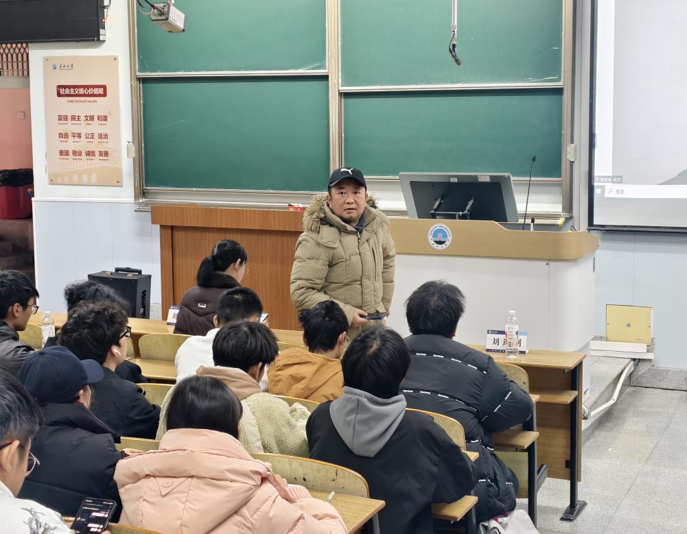 刘老师介绍了“导师组”启动会的目的与意义。随后,他现场连线武汉校区的各位导师,老师们虽远在异地,仍通过视频亲切表达了对学生们的深切关怀与期望。接着,井然老师详细介绍了导师分配的总体方案、人员调整机制及后续工作安排,并现场使用导师分配系统,顺利为全系同学完成导师匹配。最后,陈华军老师与崔海福老师分别结合自身经验,就学业规划、学习方法、科研实践参与等方面向同学们提供了具体建议,鼓励大家积极与导师沟通,夯实专业基础,提升综合能力。
