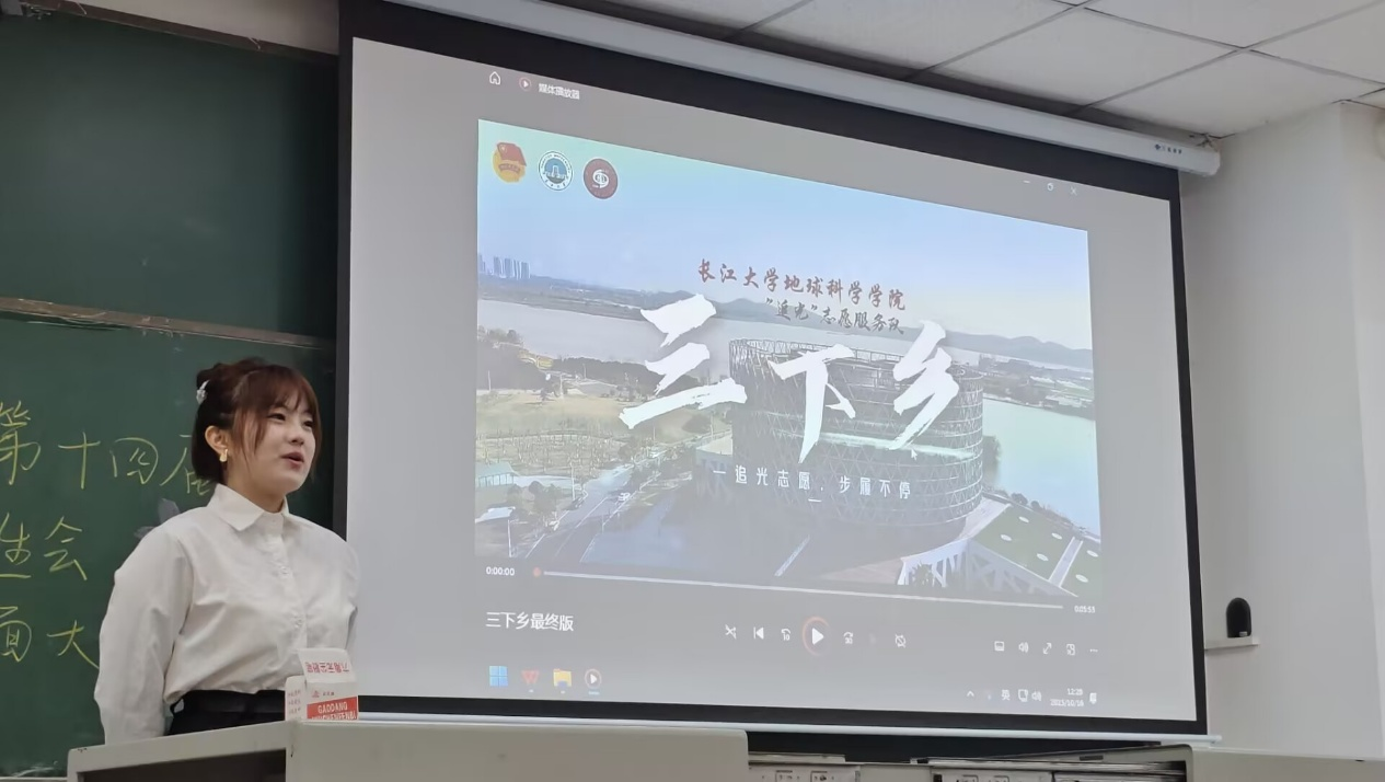 为培养与提升学生会成员的奉献精神与服务意识,本次活动特别邀请了暑期“三下乡”社会实践的优秀团队和个人进行分享。资工22301班的侯宝怡同学和地科22401班的王彩蓓同学作为代表,全面呈现了实践活动的策划思路、实施过程及工作成效。她们的展示不仅再现了深入基层、服务社会的动人场景,更充分展现了学生组织在协作中凝聚的强大合力与蓬勃创造力。