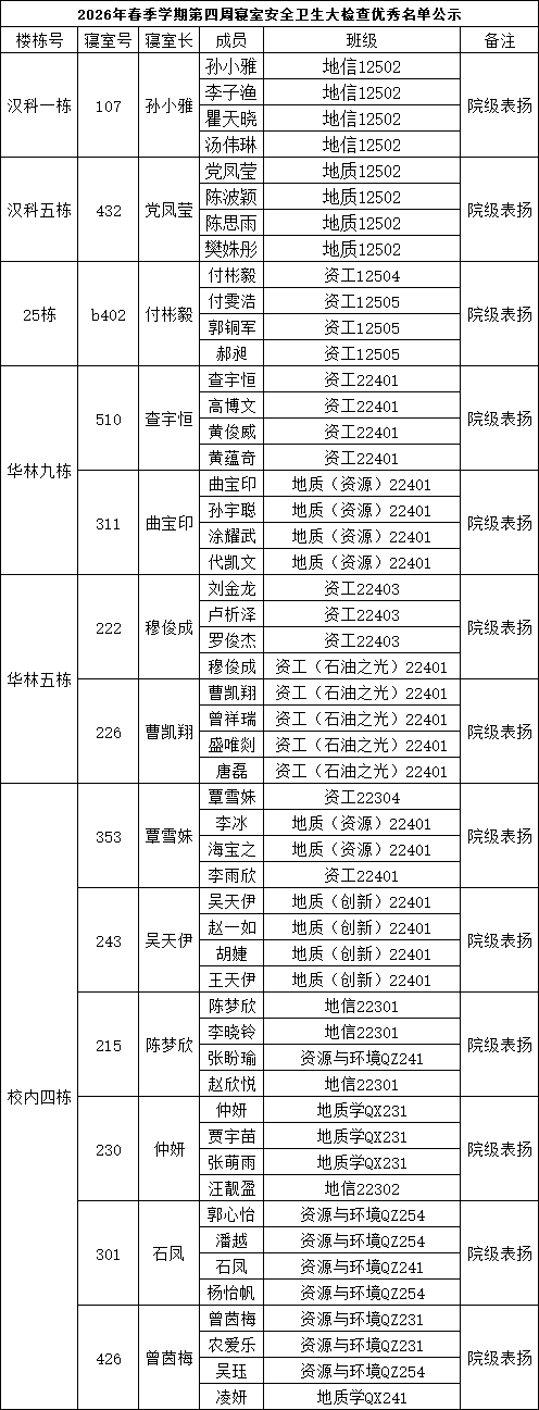 为加强学生宿舍安全管理和文明建设工作,确保学生宿舍安全、整洁、文明、有序,根据学校要求,我院于3月26日开展了第4周学生宿舍自查工作,现将检查情况通报如下