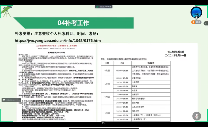 此外,2023级新生也于8月22日晚召开了“地科学院2023级新生及家长见面会”,辅导员乔宇老师分别从学校概况、迎新安排、开学前安全教育和大家关心的其他事项四个方面向新同学以及家长做了详细介绍。此外还邀请到了地科22301班班主任陈旭老师讲话,他寄语同学们珍惜大学时光,合理规划时间,树立远大理想,为社会主义现代化建设贡献自己的力量。最后乔老师对学生及家长的提问逐一进行解答,提醒同学们假期内要保障自身安全,期待在知音湖畔与同学们相见!