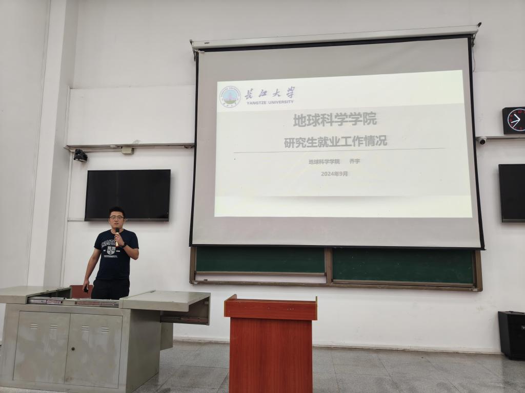 会议第三部分,学工办乔宇老师介绍了学院本年度学院毕业生的就业情况,分享了顺利就职的往届生的求职经验,并提醒同学们顺应趋势,转变观念,早做规划,勇于尝试有挑战性的工作。