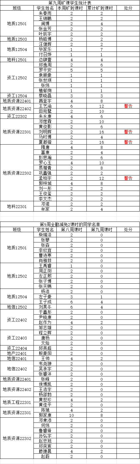 注:若学生某周存在旷课记录,但次周所有课程均正常到课(无迟到、旷课),则可从该生累计旷课课时中减免 2学时。