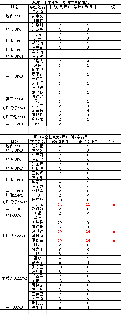 注:若学生某周存在旷课记录,但次周所有课程均正常到课(无迟到、旷课),则可从该生累计旷课课时中减免 2学时。