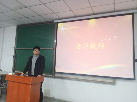 最后,潘志远老师对本学年的新闻工作进行总结。在讲话中,潘老师首先对获得表彰的学生记者及通讯员表示祝贺,接着对本学年的新闻工作表示充分的肯定与赞扬,并鼓励同学们在未来的学习工作中勤勉尽责,有所收获,也提出我院学生记者应当不断加强学习,提升能力,写出更多高质量的新闻作品。