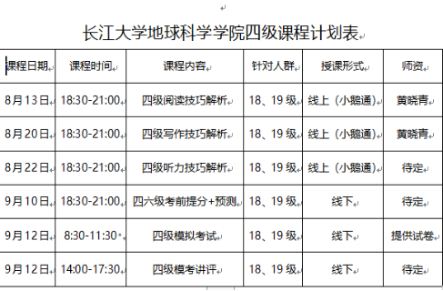 为进一步提高地科学院19级本科生英语四级一次性通过率,学院立足实际、合理规划,结合疫情防控要求,开展了一系列行之有效的线上线下备考活动。