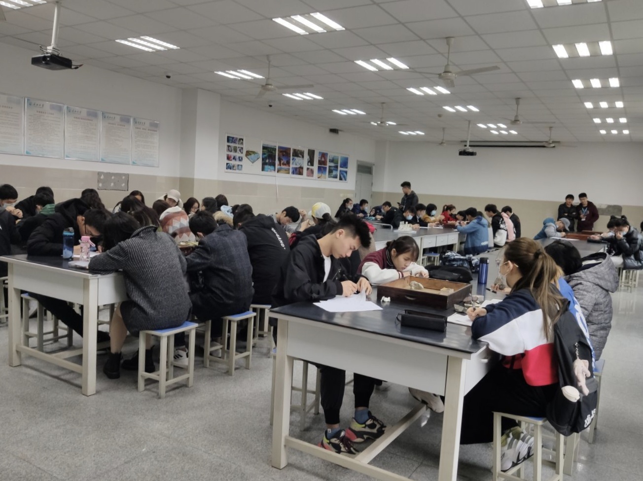 11月21日,比赛分别在实验楼A-314和A-317进行,比赛分上午和下午两轮,分别进行三大岩类手标本鉴定和岩石薄片鉴定。两轮比赛要求大家运用自己的所学的理论知识,通过鉴定,在规定的时间内完成答卷,这将对大家基础知识的掌握是否牢固、综合实践能力以及临场发挥能力都是一次考验。