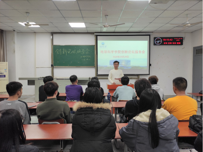 (通讯员 王一鸣)为提高地科院研究生的创新实践能力,10月29日晚7点,我院在武教B-204举办了创新论坛报告会。此次报告会由地科院研究生会主席梁博主讲,地科院部分研究生参加。