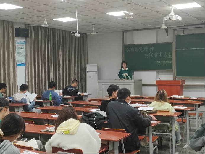 地信22103班的团会从唐慧娟同学的讲解开始,组织支部成员通过收听收看了相关新闻报道,继续深入学习领会党史学习教育动员大会的重要精神,并通过学习讨论、个人分享、宣讲会、座谈研讨等方式进行形式多样的学习教育活动。