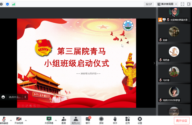 (通讯员 刘亚唯)为培育一支学风优良、素质全面,起到模范表率的学生干部队伍,加强对优秀团员、积极分子的培养,使他们成为思想教育、学风建设、志愿者活动、科技文化活动中的骨干力量。11月27日16:00,我院第三届地科院青马小组成功于腾讯会议举行线上开班仪式。