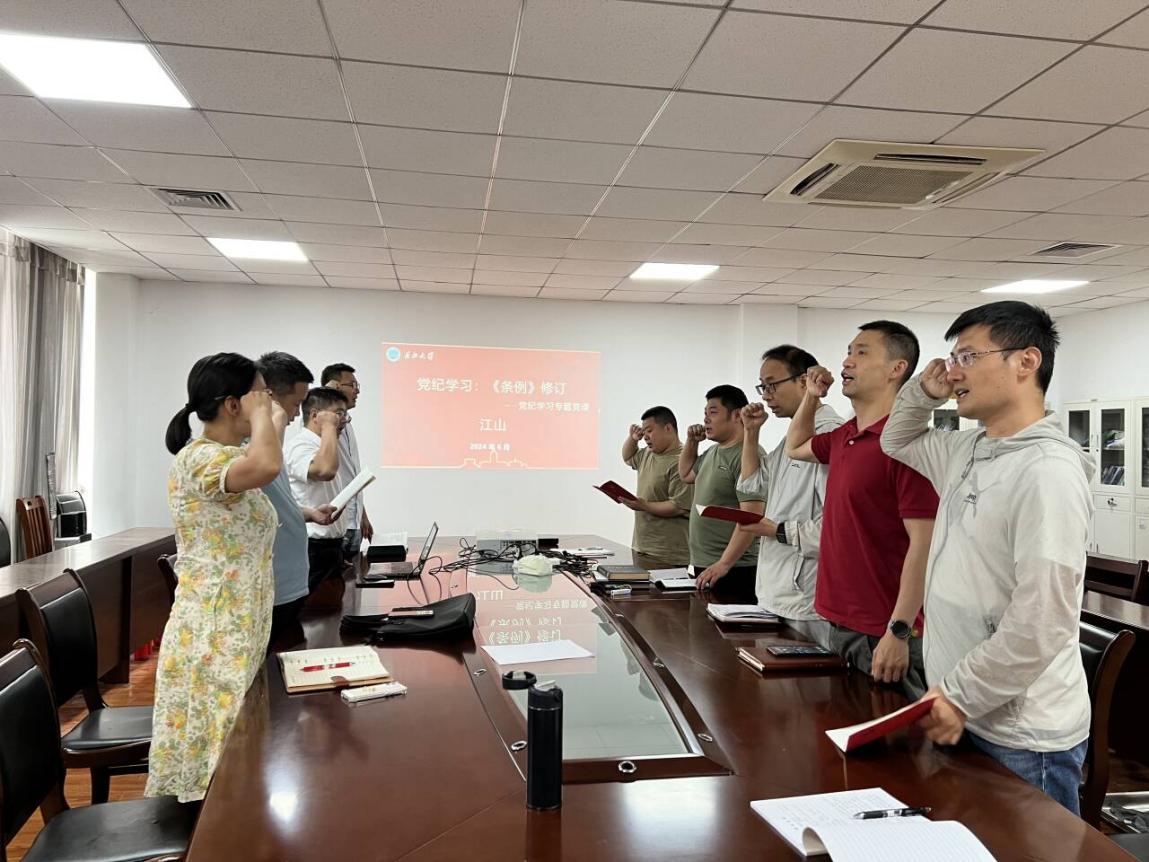 “我志愿加入中国共产党,拥护党的纲领,遵守党的章程……”在邵燕林同志的带领下,党员们举起右拳,发出铮铮誓言,重温了入党誓词。副院长江山以《中国共产党纪律处分条例》的主要修订内容为题,为各位党员同志讲授党纪学习教育微党课。江山强调,党的纪律是全体党员必须遵守的行为规则,党员同志要深刻认识到党纪的重要性,要进一步淬炼忠诚品格、坚守初心使命、强化遵规守纪、提高党性修养,为学院的事业发展提供坚强纪律保障。