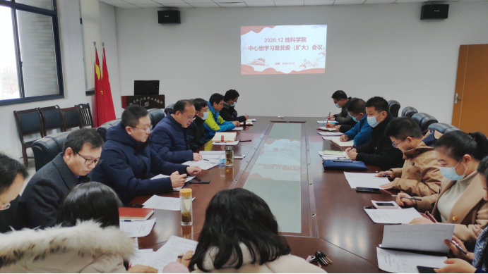 (通讯员 廖鹏程)2020年12月23日上午10时,我院党委理论学习中心组在石油科技大楼C202会议室召开12月份中心组集中学习会议。中心组全体成员、学院党委委员、各系主任、各党支部书记、工会主席、各科室长参与了本次学习,会议由党委书记江万哲主持。