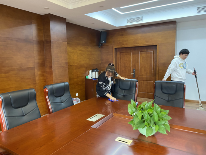 (通讯员 吉霞)建党百年之际,根据学校及学院“学党史、悟思想、办实事、开新局”系列活动安排,我院学生党支部积极响应各级党委党史学习号召,组织学生党员和入党积极分子开展了系列志愿活动。从今天春季学期开学至今,每周五安排四名党员志愿者打扫学院会议室就是系列活动之一,旨在让学生们在劳动中体会党史精神价值。