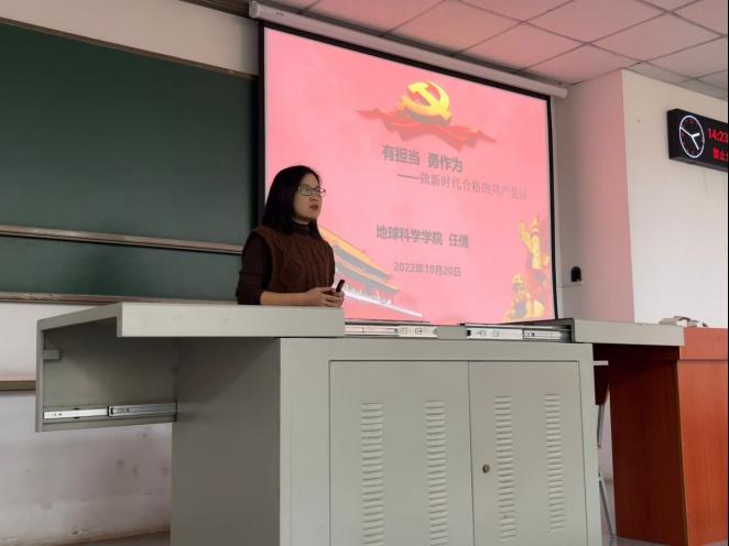 接着,任书记从政治、学习、工作和生活四个方面,并结合学院相关优秀事迹,生动地向同学们阐释了大学生党员如何在实践中有担当、勇作为。