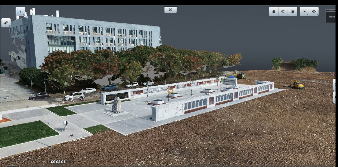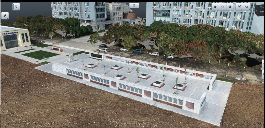 2023年,新建“中国地层标本长廊”课间地学实习基地,占地1350平方米,极大地丰富了我校地质课间实习资源,为了加强长廊的宣传推广,我们采用无人机倾斜摄影基础构建了长廊的实景三维模型(图51),并在网上发布。公众可足不出户地多层次多角度在线观察地质长廊的三维模型,达到身临其境的效果。技术上,采用大疆 精灵 4Pro无人机和无人机飞行控制软件和Context Capture建模软件构建了不同详细程度的三维模型,形成了数字长廊的三维数据体,发布成网络开放格式3DTiles,能够达到在线高效显示的目的。