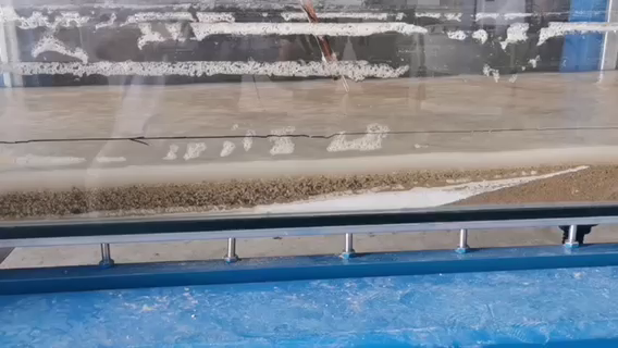 玻璃水槽长15m,宽0.8m,深1m(图27),能够变坡,最大坡度3°,设有加沙装置、泥浆搅拌罐和尾门,配有流速计、浓度计和影像采集系统。主要功能是开展牵引流、重力流的沉积机理研究。