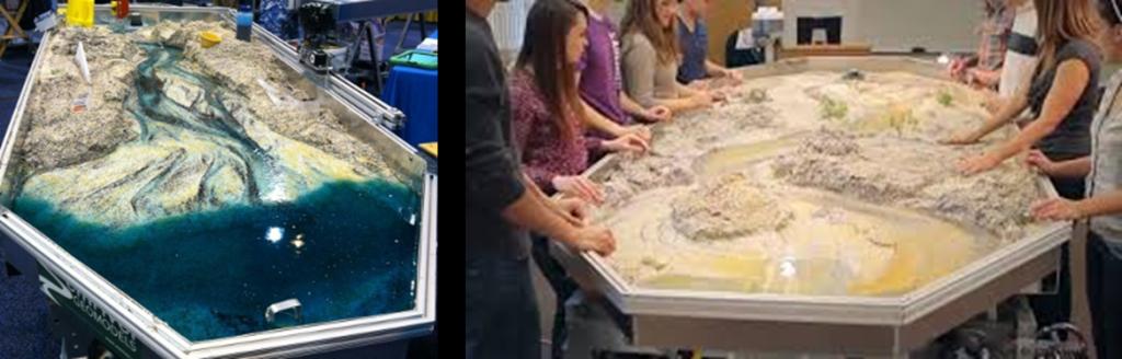 Table stream(图34)是一个将沉积模拟平台缩小到台球桌大小的沙盘模型,配有小型的供水系统、沉砂池和砂子、砾石等,可通过动手操作向中小学生科普河流湖泊的演化过程及沉积模拟的相关知识,培养其对沉积学的兴趣。