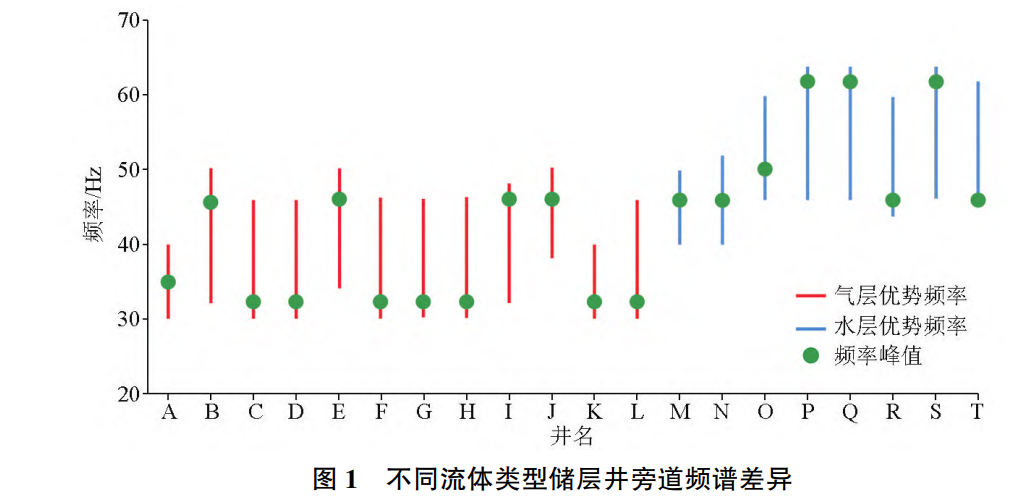 图1 不同流体类型储层井旁道频谱差异