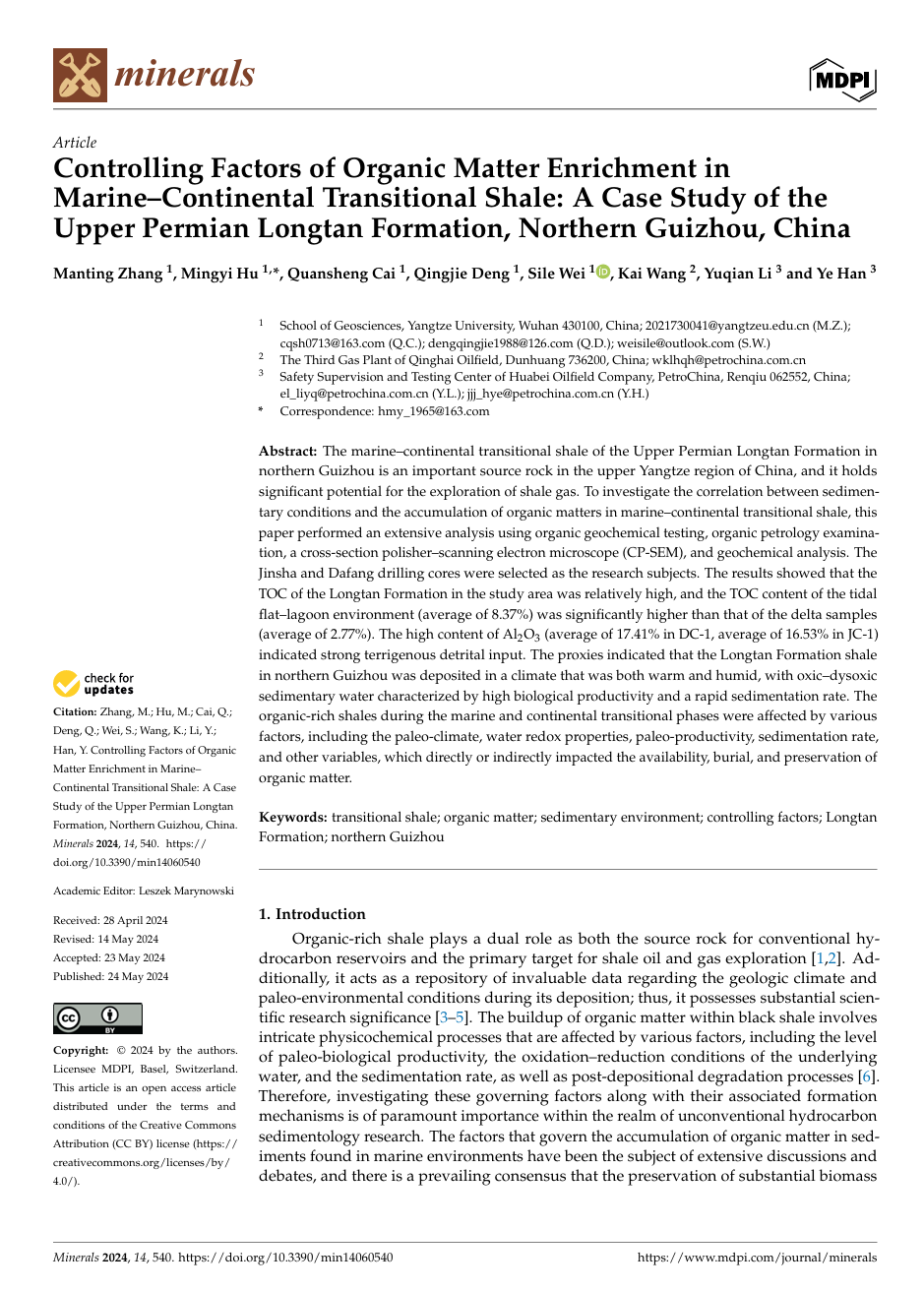 英国威廉集团地质系胡明毅教授团队长期从事储层沉积学及页岩气资源评价等方向的研究。团队成员张曼婷博士在期刊《Minerals》上发表题为《Controlling Factors of Organic Matter Enrichment in Marine–Continental Transitional Shale: A Case Study of the Upper Permian Longtan Formation, Northern Guizhou, China》的研究论文,英国威廉集团为论文第一署名单位,博士生张曼婷为论文第一作者,其导师胡明毅教授为该文通讯作者。