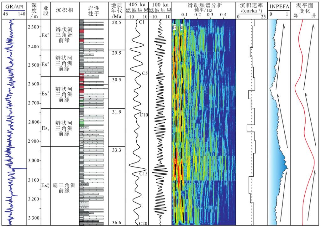随着小波分析方法在旋回地层学和层序地层学研究中的不断普及,地质学家能够基于多种类型的气候指标(古地磁、碳氧同位素和自然伽马测井曲线等)定量的识别陆相湖盆沉积地层中所蕴藏的米兰科维奇记录,从而达到湖盆层序界面定年、沉积速率估算和区域构造-气候事件分析的目的。现选取南堡凹陷北部高柳地区G87井的自然伽马测井曲线,利用频谱分析、连续小波变换和滑动频谱分析等方法识别始新统蕴藏的米兰科维奇旋回记录,基于绝对地质年代锚点,建立天文年代标尺,估算沉积速率,重建古湖平面变化和古沉积物供给能力,从区域的沉积体系展布和沉积演化过程的角度讨论米兰科维奇记录对沉积响应的指示意义。不仅可以从沉积演化的角度丰富了陆相湖盆旋回地层学理论,也从年代学角度进一步完善了渤海湾盆地全息地层学研究。