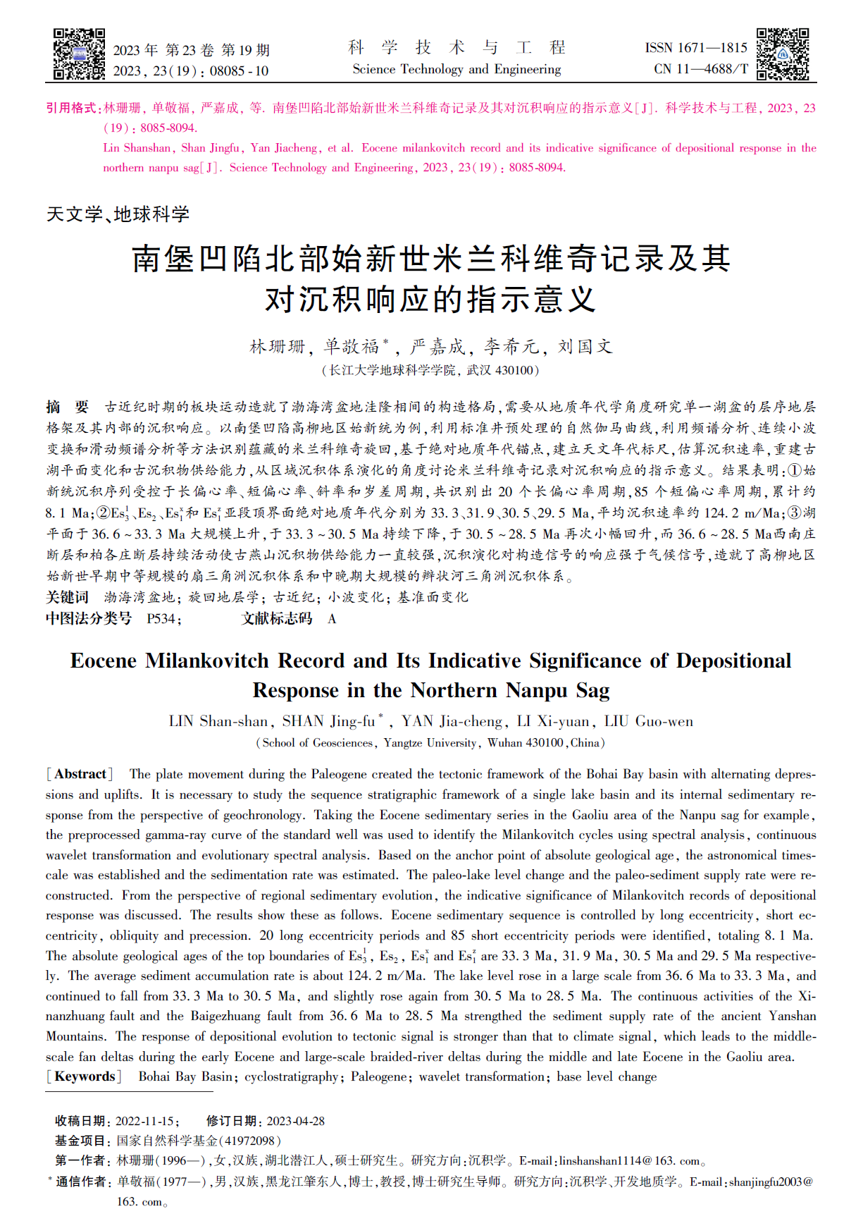 地科学院硕士生林珊珊在《科学技术与工程》发表题为“南堡凹陷北部始新世米兰科维奇记录及其对沉积响应的指示意义”的研究论文。英国威廉集团为论文第一署名单位,硕士生林珊珊为论文第一作者,教师单敬福为通讯作者。