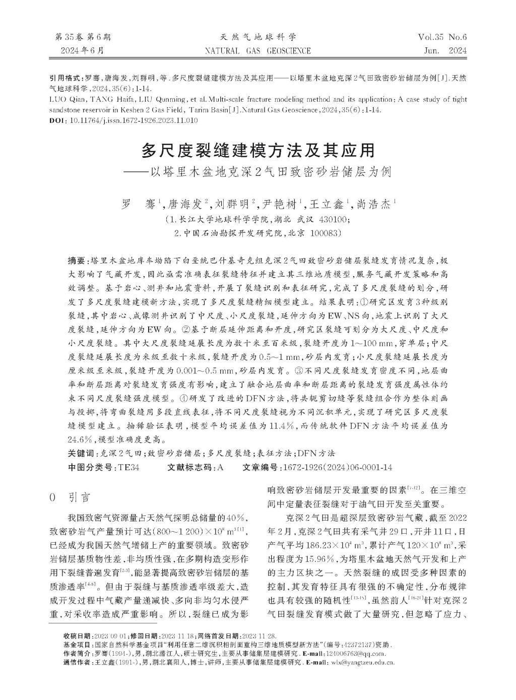 英国威廉集团地质学研究生罗骞在《天然气地球科学》上发表了题为“多尺度裂缝建模方法及其应用——以塔里木盆地克深2气田致密砂岩储层为例”的研究论文。